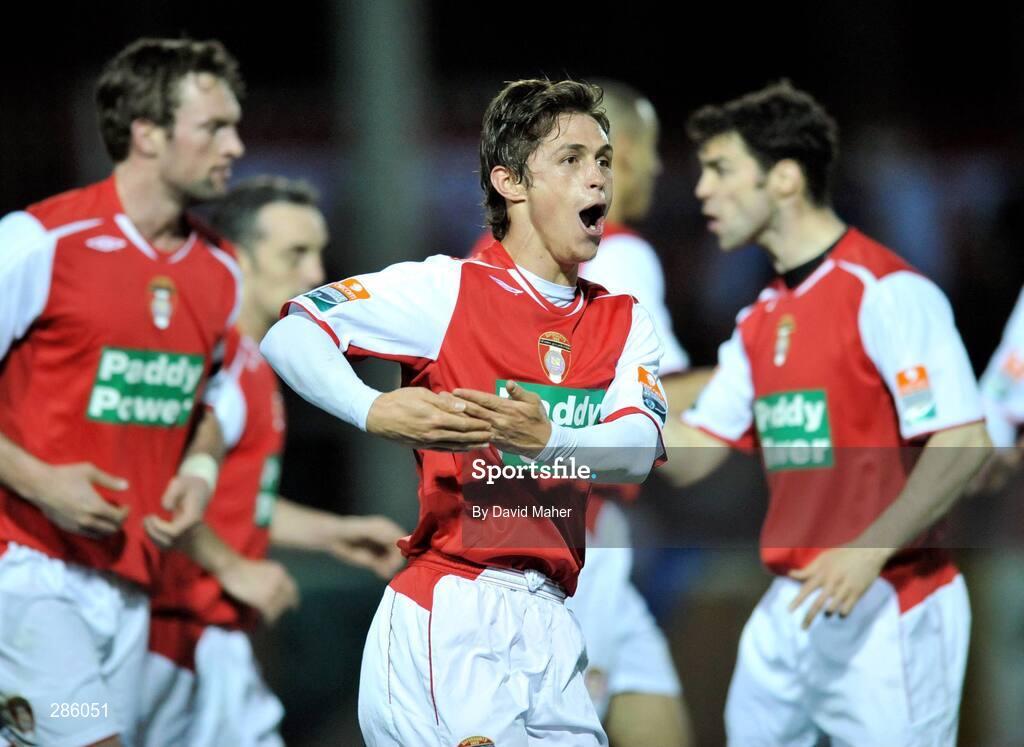 7 March 2008; Ryan Guy, centre, St. Patrick's Athletic, celebrates after scoring his side's second goal. eircom League of Ireland Premier Division, St. Patrick's Athletic v Sligo Rovers, Richmond Park, Inchicore, Dublin. Picture credit; David Maher / SPORTSFILE