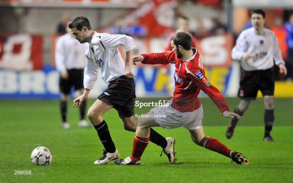 7 March 2008; Robert Martin, Dundalk, in action against Alan Keely, Shelbourne. eircom League, First Division, Shelbourne v Dundalk, Tolka Park, Drumcondra, Dublin. Picture credit; Brian Lawless / SPORTSFILE