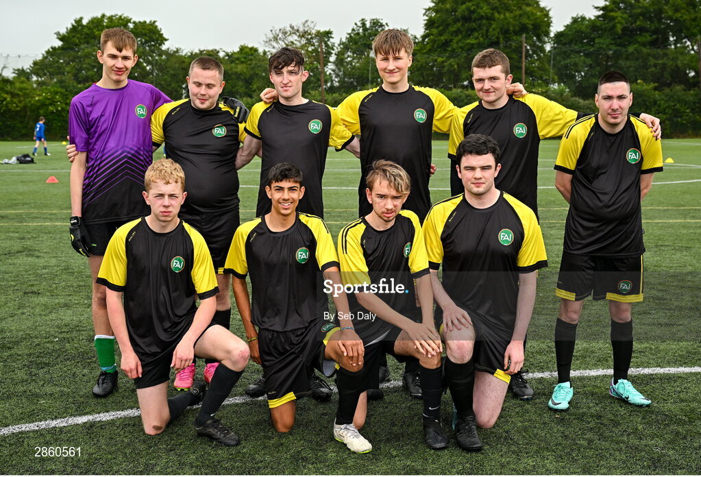 29 June 2024; The South East and Midlands team pose for a team photograph before the FAI Football For All Interprovincial Games at Evergreen FC in Kilkenny. The FAI Football For All programme was initiated to assist and develop opportunities for players of all ages with a disability in their local community. Photo by Seb Daly/Sportsfile