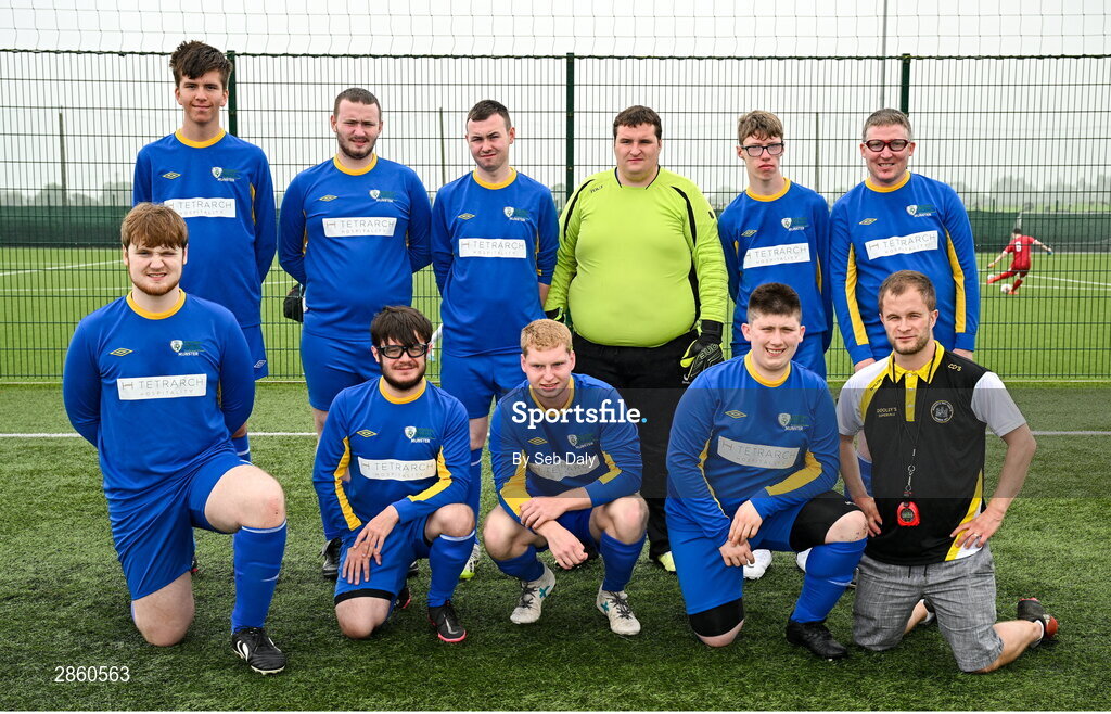 29 June 2024; The Munster team pose for a team photograph before the FAI Football For All Interprovincial Games at Evergreen FC in Kilkenny. The FAI Football For All programme was initiated to assist and develop opportunities for players of all ages with a disability in their local community. Photo by Seb Daly/Sportsfile