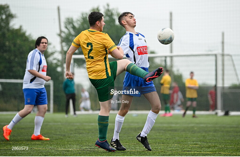 29 June 2024; Action from Leinster North A against Leinster North B during the FAI Football For All Interprovincial Games at Evergreen FC in Kilkenny. The FAI Football For All programme was initiated to assist and develop opportunities for players of all ages with a disability in their local community. Photo by Seb Daly/Sportsfile