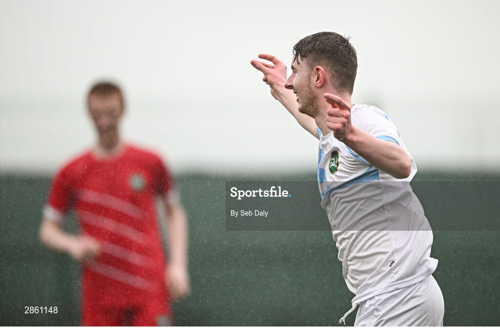 29 June 2024; Brandon Bradshaw of Leinster celebrates scoring a goal during the FAI Football For All Interprovincial Games at Evergreen FC in Kilkenny. The FAI Football For All programme was initiated to assist and develop opportunities for players of all ages with a disability in their local community. Photo by Seb Daly/Sportsfile