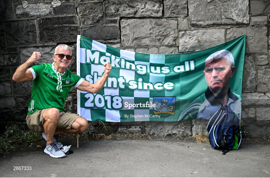 7 July 2024; Limerick supporter Christy Keogh, from Limerick City, before the GAA Hurling All-Ireland Senior Championship semi-final match between Limerick and Cork at Croke Park in Dublin. Photo by Stephen McCarthy/Sportsfile