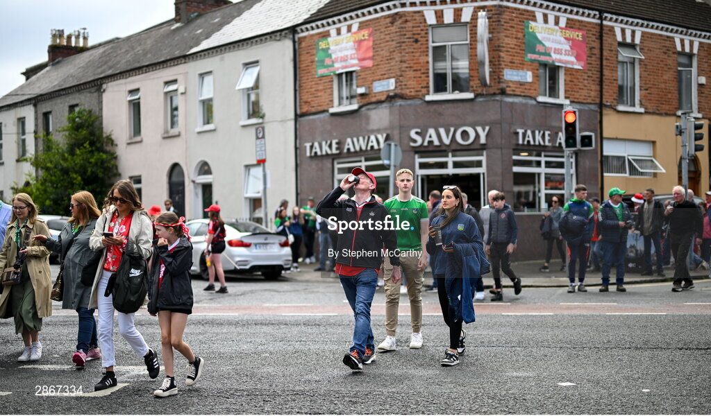 7 July 2024; Supporters arrive for the GAA Hurling All-Ireland Senior Championship semi-final match between Limerick and Cork at Croke Park in Dublin. Photo by Stephen McCarthy/Sportsfile
