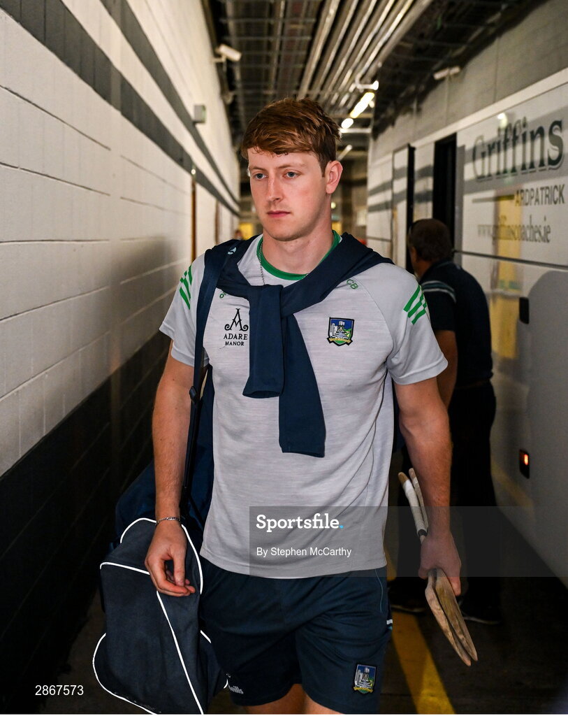 7 July 2024; Conor Boylan of Limerick arrives for the GAA Hurling All-Ireland Senior Championship semi-final match between Limerick and Cork at Croke Park in Dublin. Photo by Stephen McCarthy/Sportsfile
