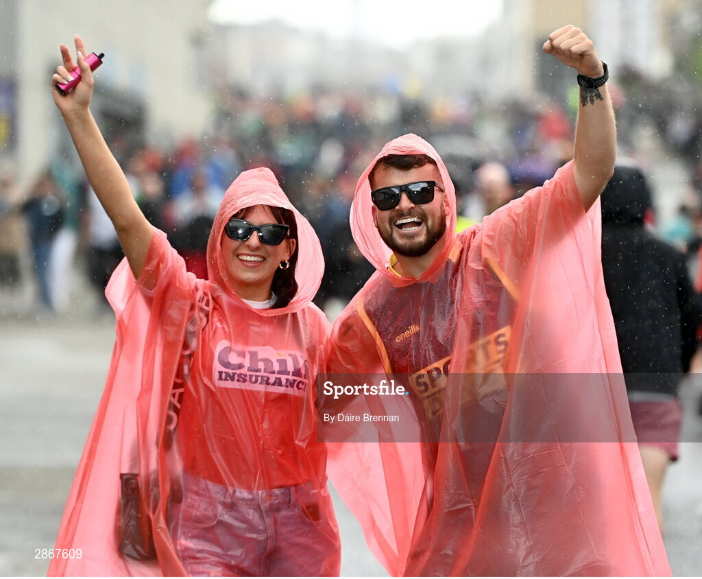 7 July 2024; Cork supporters Bernard Kent and Caitlin Spillane, from Knocknaheeney, Co Cork, ahead of the GAA Hurling All-Ireland Senior Championship semi-final match between Limerick and Cork at Croke Park in Dublin. Photo by Daire Brennan/Sportsfile