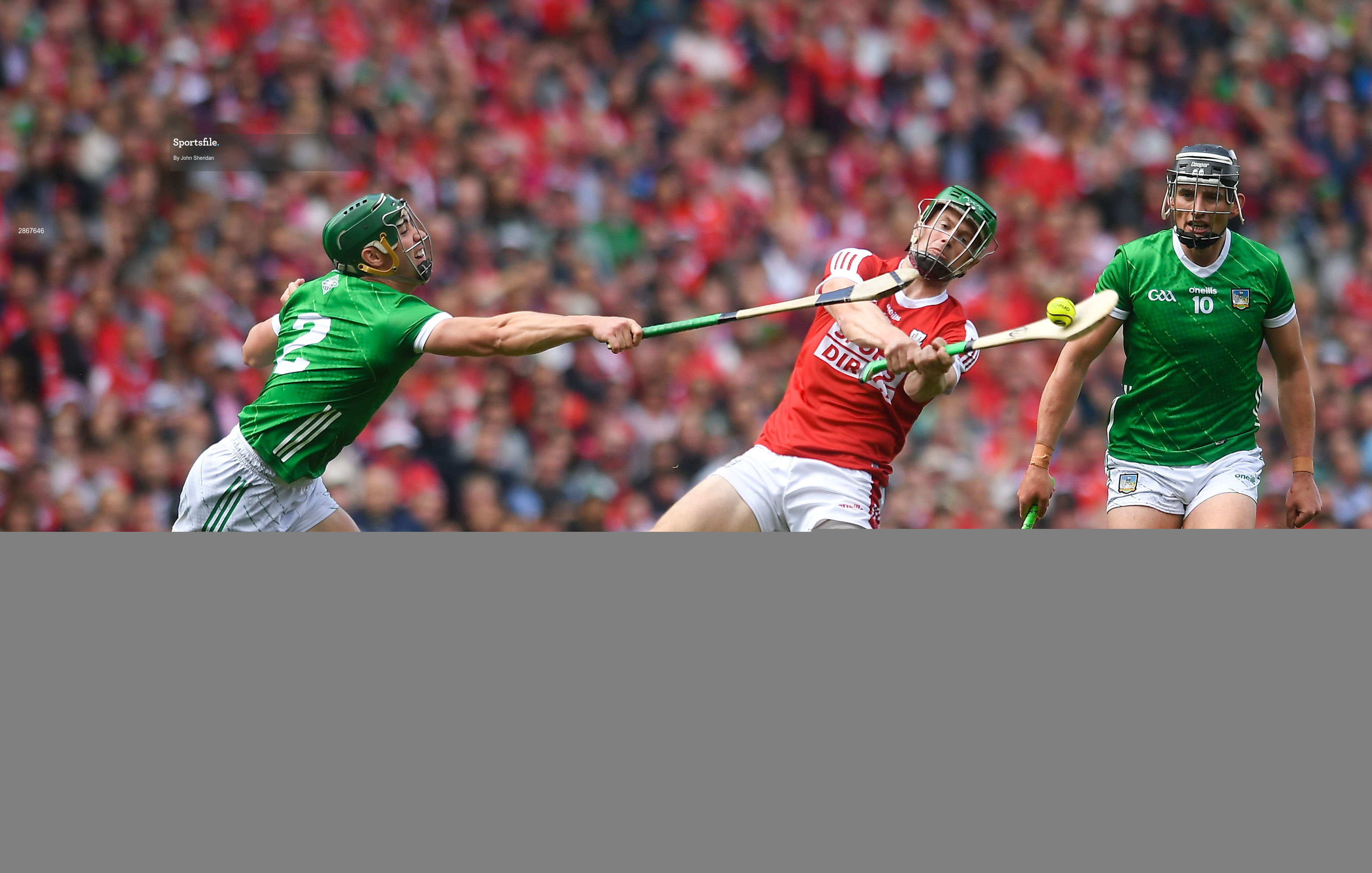 7 July 2024; Seamus Harnedy of Cork in action against Sean Finn of Limerick during the GAA Hurling All-Ireland Senior Championship semi-final match between Limerick and Cork at Croke Park in Dublin. Photo by John Sheridan/Sportsfile
