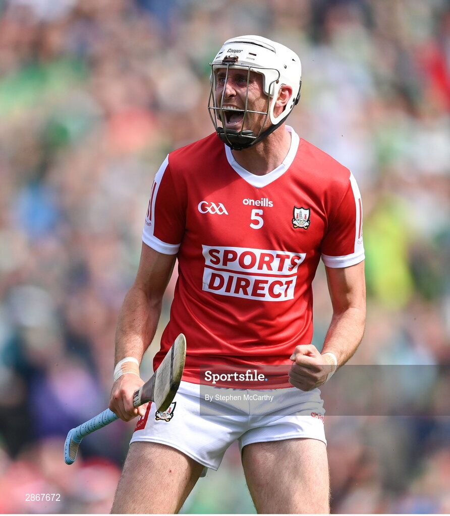 7 July 2024; Tim O'Mahony of Cork celebrates winning a free during the GAA Hurling All-Ireland Senior Championship semi-final match between Limerick and Cork at Croke Park in Dublin. Photo by Stephen McCarthy/Sportsfile