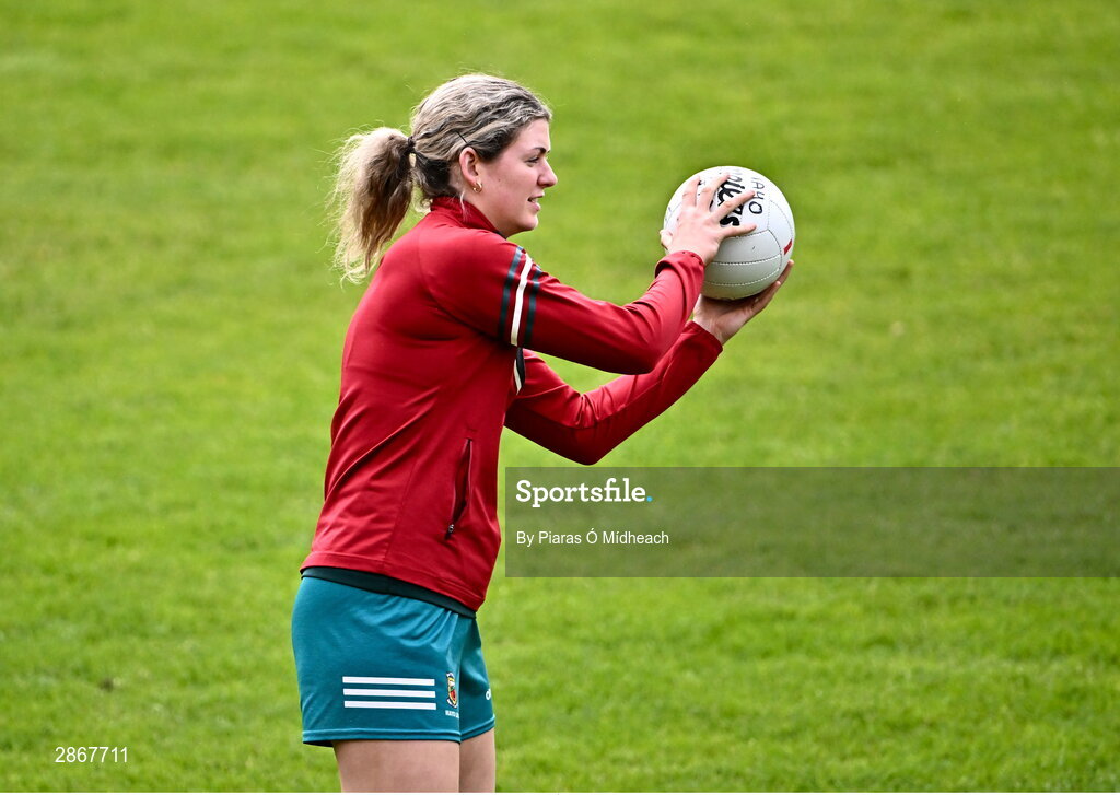 7 July 2024; Mayo goalkeeper Laura Brennan before the TG4 All-Ireland Ladies Football Senior Championship quarter-final match between Armagh and Mayo at the BOX-IT Athletic Grounds in Armagh. Photo by Piaras Ó Mídheach/Sportsfile