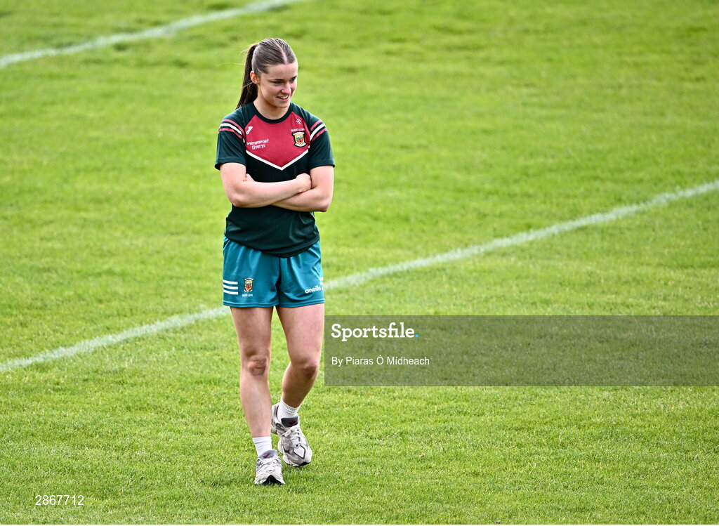 7 July 2024; Mayo captain Saoirse Lally before the TG4 All-Ireland Ladies Football Senior Championship quarter-final match between Armagh and Mayo at the BOX-IT Athletic Grounds in Armagh. Photo by Piaras Ó Mídheach/Sportsfile