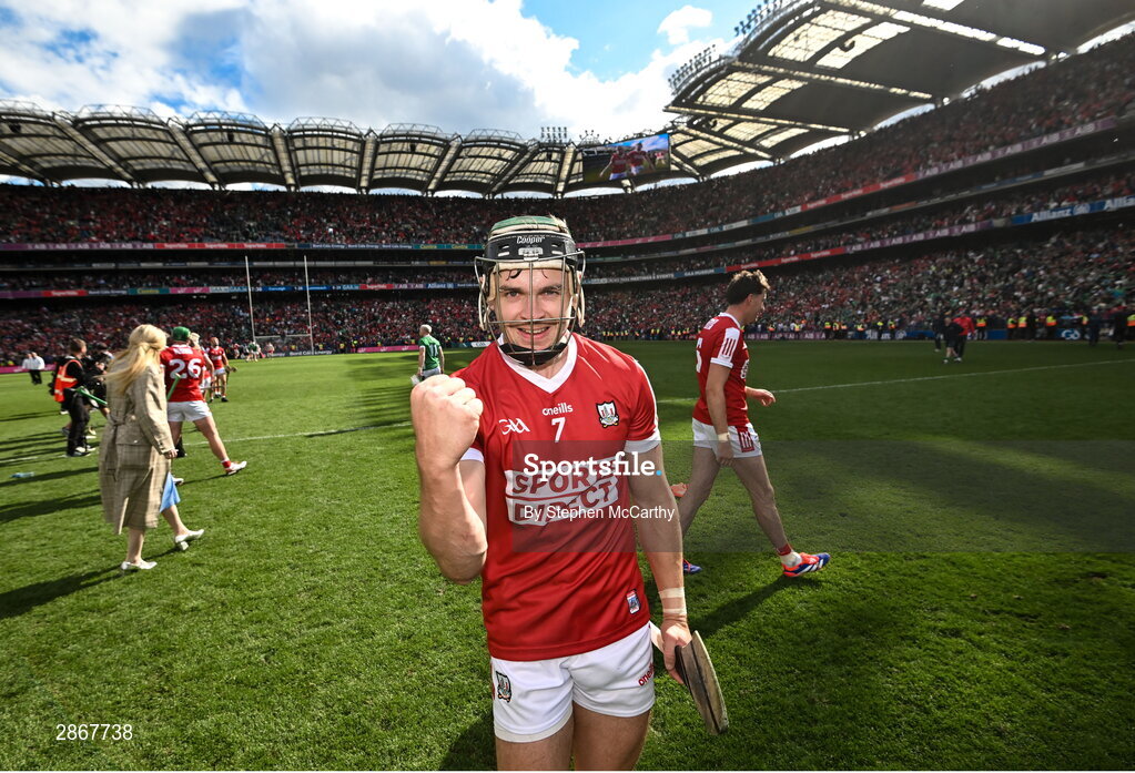 7 July 2024; Mark Coleman of Cork celebrates after the GAA Hurling All-Ireland Senior Championship semi-final match between Limerick and Cork at Croke Park in Dublin. Photo by Stephen McCarthy/Sportsfile