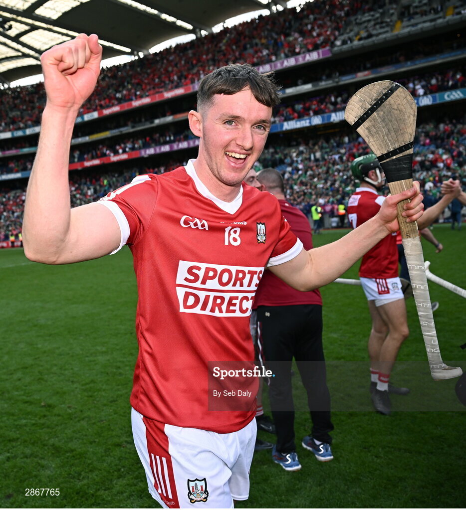 7 July 2024; Ger Mellerick of Cork celebrates after his side's victory in the GAA Hurling All-Ireland Senior Championship semi-final match between Limerick and Cork at Croke Park in Dublin. Photo by Seb Daly/Sportsfile