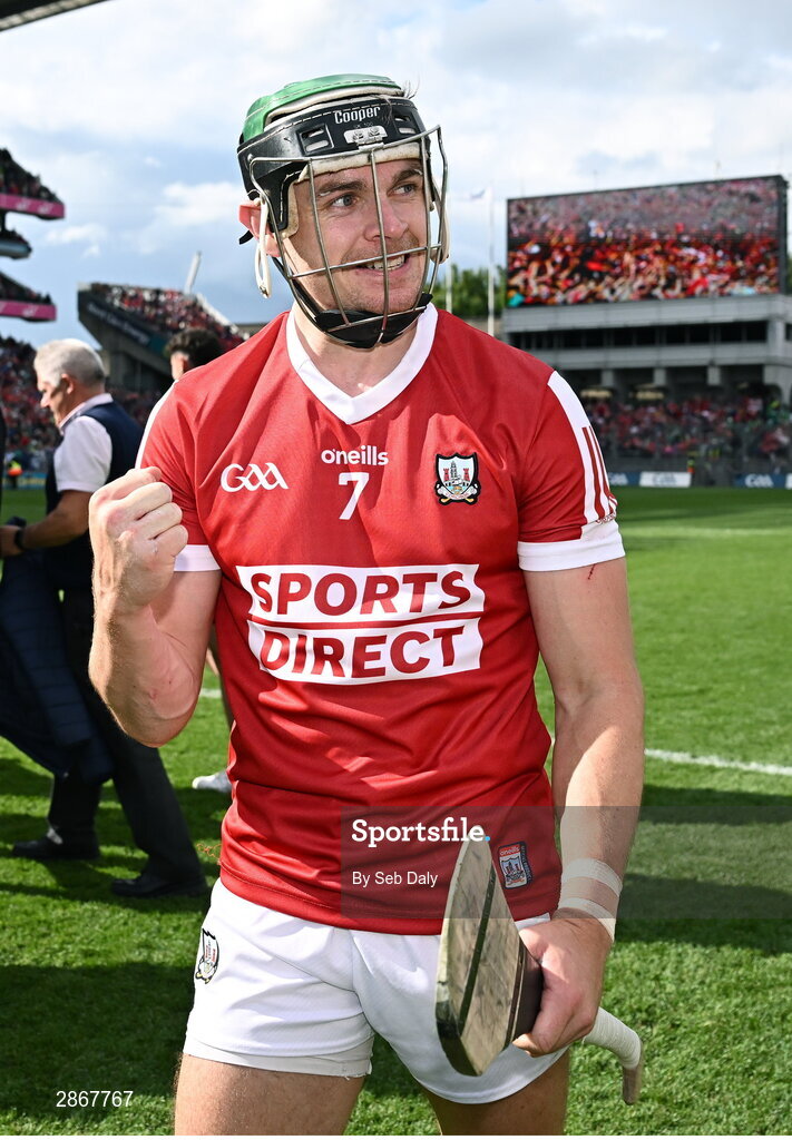 7 July 2024; Mark Coleman of Cork celebrates after his side's victory in the GAA Hurling All-Ireland Senior Championship semi-final match between Limerick and Cork at Croke Park in Dublin. Photo by Seb Daly/Sportsfile