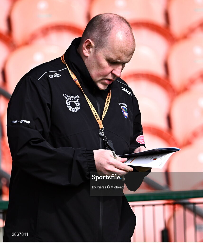 7 July 2024; Armagh manager Gregory McGonigle before the TG4 All-Ireland Ladies Football Senior Championship quarter-final match between Armagh and Mayo at the BOX-IT Athletic Grounds in Armagh. Photo by Piaras Ó Mídheach/Sportsfile