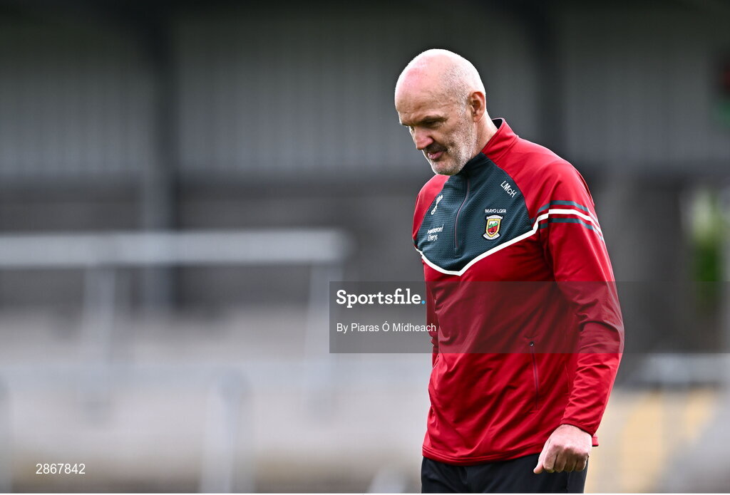 7 July 2024; Mayo manager Liam McHale before the TG4 All-Ireland Ladies Football Senior Championship quarter-final match between Armagh and Mayo at the BOX-IT Athletic Grounds in Armagh. Photo by Piaras Ó Mídheach/Sportsfile