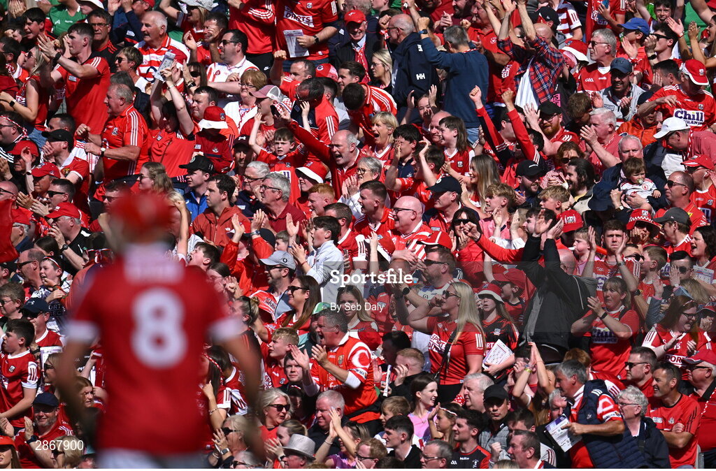 7 July 2024; Cork supporters during the GAA Hurling All-Ireland Senior Championship semi-final match between Limerick and Cork at Croke Park in Dublin. Photo by Seb Daly/Sportsfile