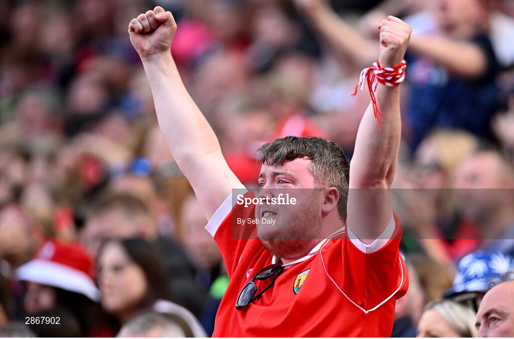 7 July 2024; A Cork supporter during the GAA Hurling All-Ireland Senior Championship semi-final match between Limerick and Cork at Croke Park in Dublin. Photo by Seb Daly/Sportsfile
