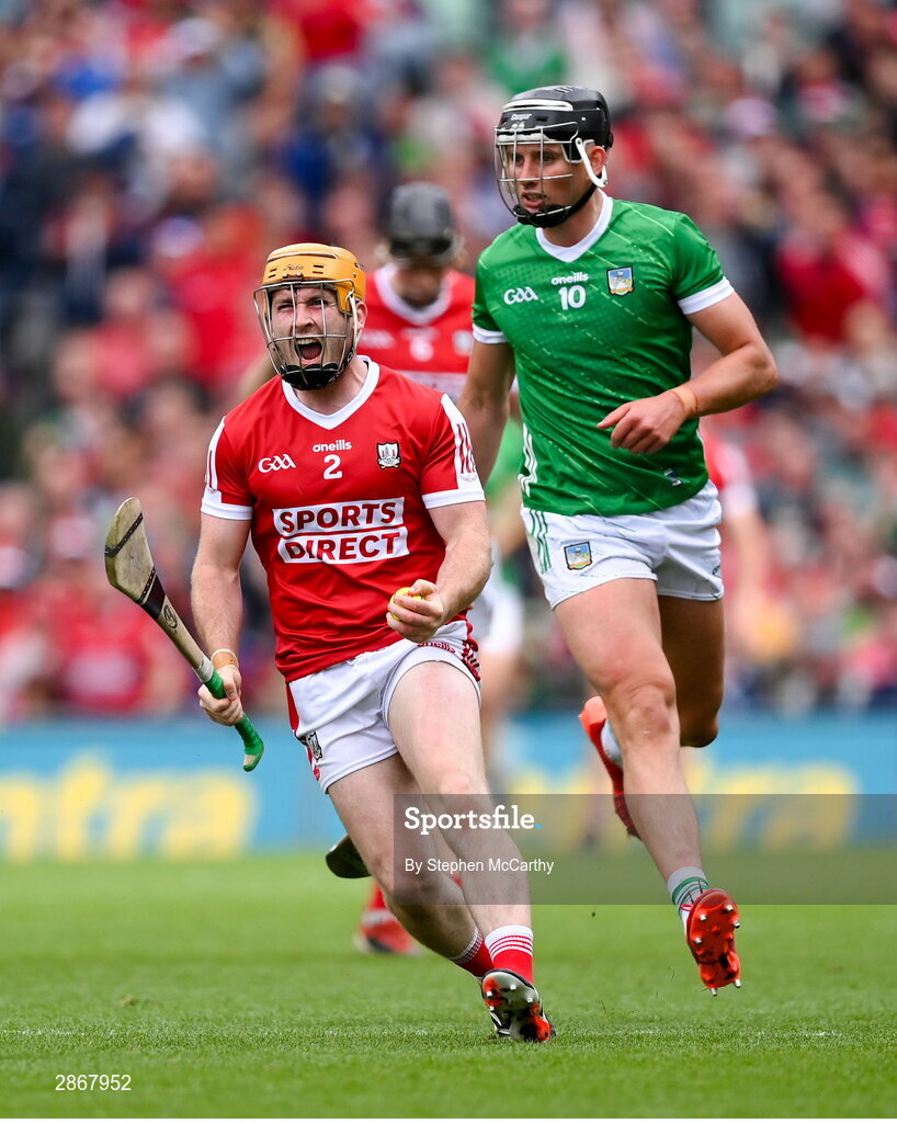 7 July 2024; Niall O'Leary of Cork celebrates winning a free late in the GAA Hurling All-Ireland Senior Championship semi-final match between Limerick and Cork at Croke Park in Dublin. Photo by Stephen McCarthy/Sportsfile
