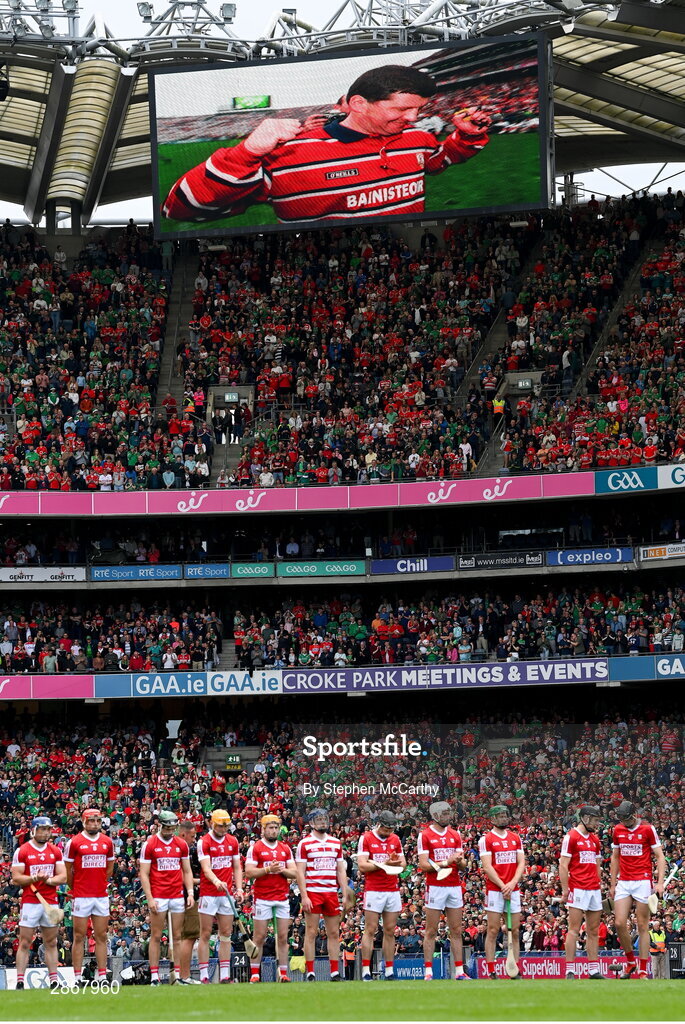 7 July 2024; Players and spectators during a tribute to the late John O'Mahony former Galway, Mayo and Leitrim manager, before the GAA Hurling All-Ireland Senior Championship semi-final match between Limerick and Cork at Croke Park in Dublin. Photo by Stephen McCarthy/Sportsfile