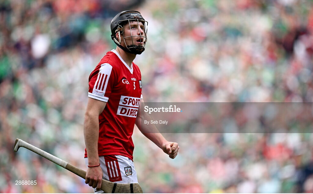 7 July 2024; Eoin Downey of Cork during the GAA Hurling All-Ireland Senior Championship semi-final match between Limerick and Cork at Croke Park in Dublin. Photo by Seb Daly/Sportsfile