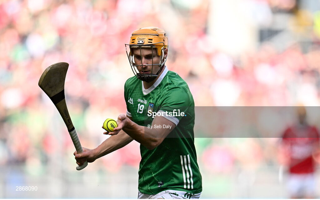 7 July 2024; Adam English of Limerick during the GAA Hurling All-Ireland Senior Championship semi-final match between Limerick and Cork at Croke Park in Dublin. Photo by Seb Daly/Sportsfile