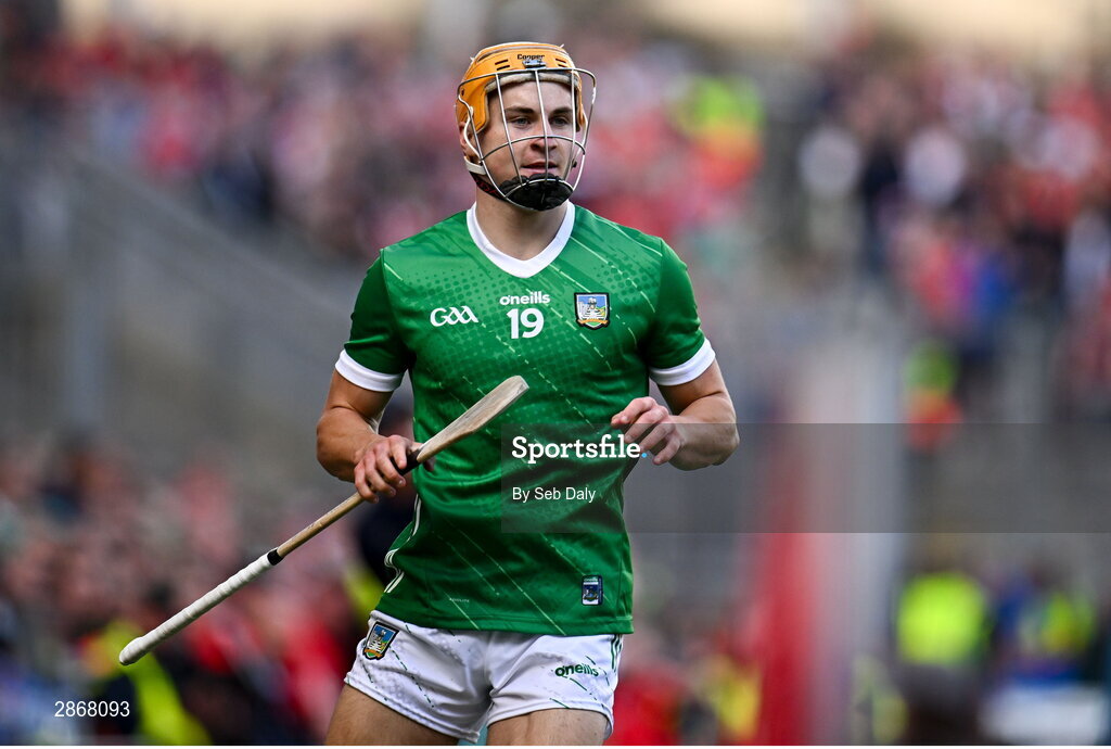 7 July 2024; Adam English of Limerick during the GAA Hurling All-Ireland Senior Championship semi-final match between Limerick and Cork at Croke Park in Dublin. Photo by Seb Daly/Sportsfile