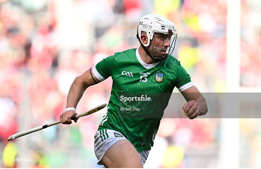 7 July 2024; Aaron Gillane of Limerick during the GAA Hurling All-Ireland Senior Championship semi-final match between Limerick and Cork at Croke Park in Dublin. Photo by Seb Daly/Sportsfile