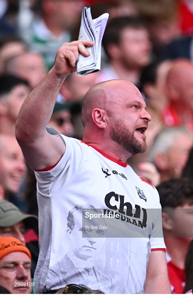 7 July 2024; A Cork supporter during the GAA Hurling All-Ireland Senior Championship semi-final match between Limerick and Cork at Croke Park in Dublin. Photo by Seb Daly/Sportsfile