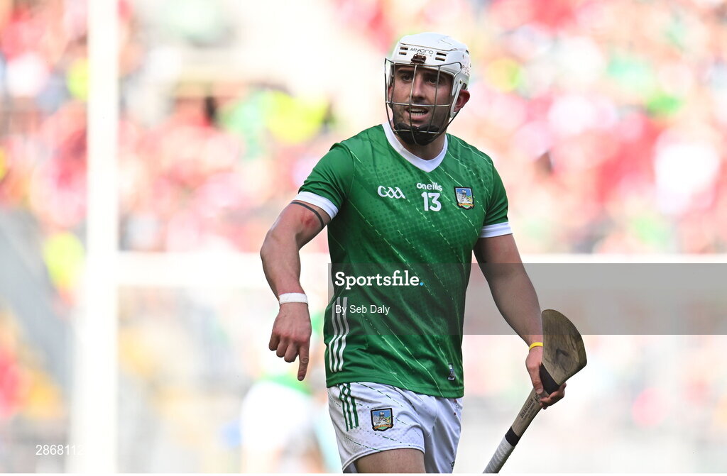 7 July 2024; Aaron Gillane of Limerick during the GAA Hurling All-Ireland Senior Championship semi-final match between Limerick and Cork at Croke Park in Dublin. Photo by Seb Daly/Sportsfile