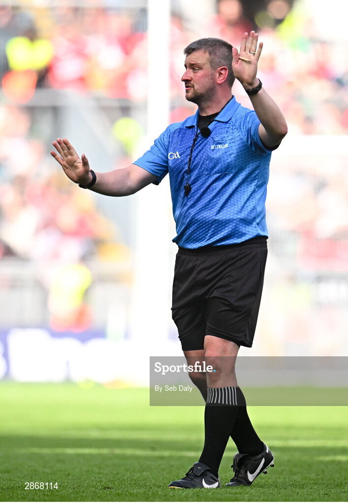7 July 2024; Referee Thomas Walsh during the GAA Hurling All-Ireland Senior Championship semi-final match between Limerick and Cork at Croke Park in Dublin. Photo by Seb Daly/Sportsfile