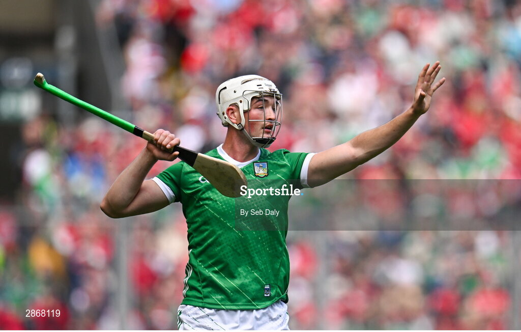 7 July 2024; Kyle Hayes of Limerick during the GAA Hurling All-Ireland Senior Championship semi-final match between Limerick and Cork at Croke Park in Dublin. Photo by Seb Daly/Sportsfile