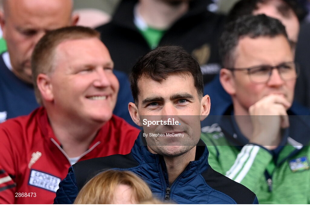 7 July 2024; Minister for finance Jack Chambers TD, centre, with former Minister for finance Michael McGrath TD, left, and Minister for further and higher education, research, innovation and science Patrick O'Donovan TD, right, during the GAA Hurling All-Ireland Senior Championship semi-final match between Limerick and Cork at Croke Park in Dublin. Photo by Stephen McCarthy/Sportsfile
