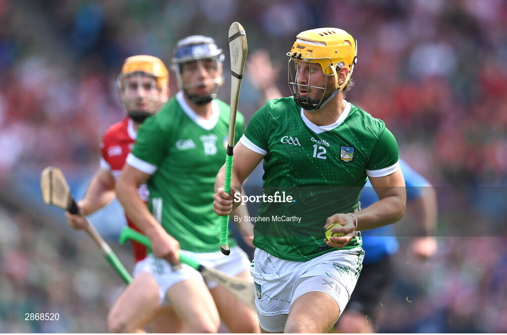 7 July 2024; Tom Morrissey of Limerick during the GAA Hurling All-Ireland Senior Championship semi-final match between Limerick and Cork at Croke Park in Dublin. Photo by Stephen McCarthy/Sportsfile