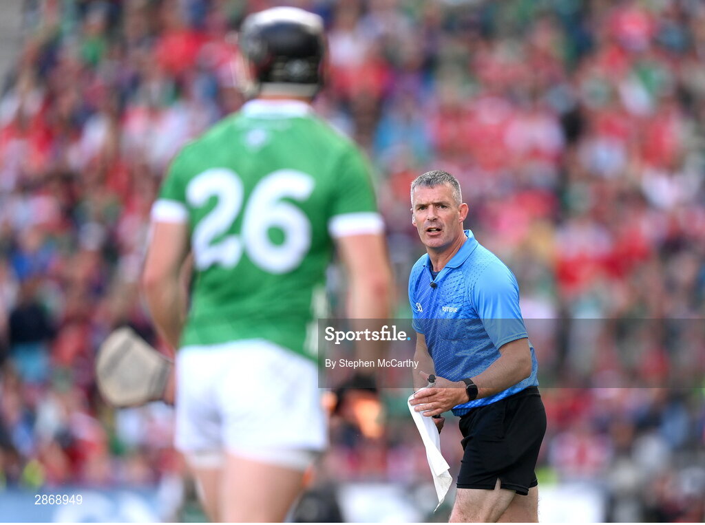 7 July 2024; Stand-by referee James Owens during the GAA Hurling All-Ireland Senior Championship semi-final match between Limerick and Cork at Croke Park in Dublin. Photo by Stephen McCarthy/Sportsfile