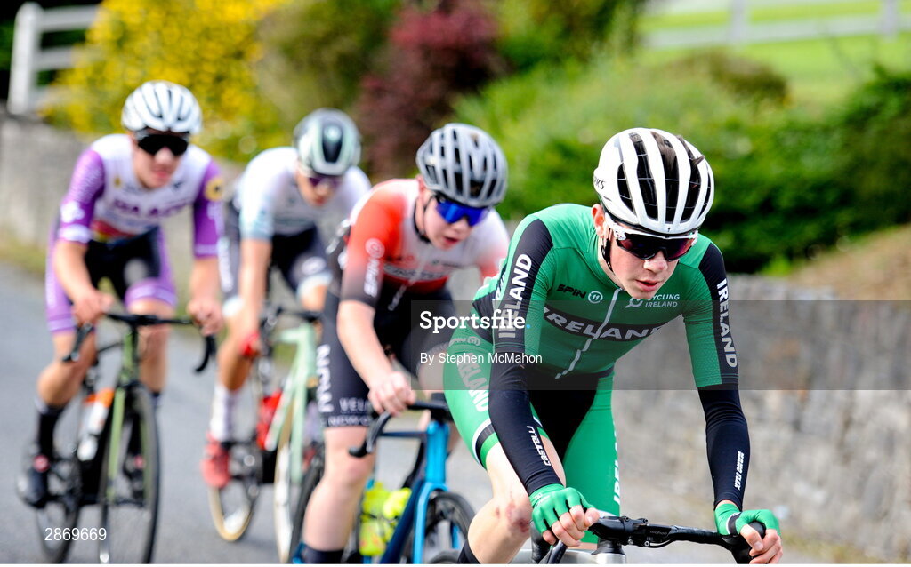 9 July 2024; Cal Tutty of Cycling Ireland team during stage one of the 2024 Junior Tour of Ireland at the Maghera stage in Clare. Photo by Stephen McMahon/Sportsfile