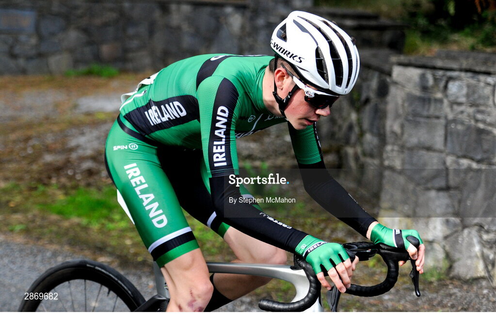 9 July 2024; Cal Tutty of Cycling Ireland team during stage one of the 2024 Junior Tour of Ireland at the Maghera stage in Clare. Photo by Stephen McMahon/Sportsfile
