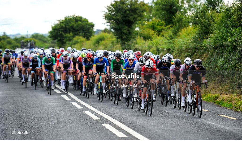 9 July 2024; The peloton during stage one of the 2024 Junior Tour of Ireland at the Maghera stage in Clare. Photo by Stephen McMahon/Sportsfile