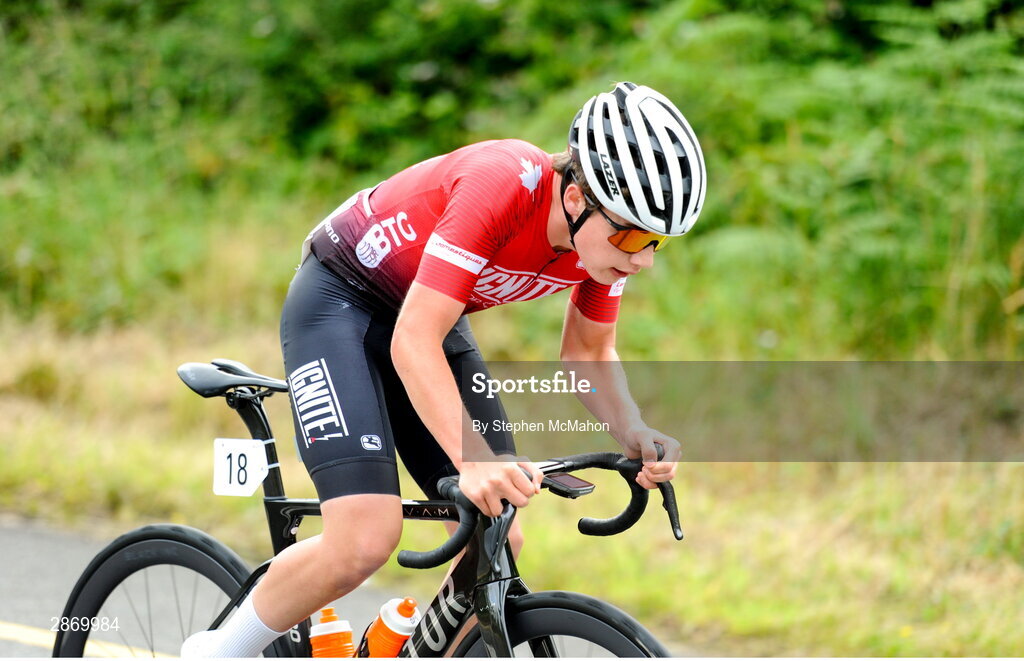 9 July 2024; Brody Mann of Ignite Canada team during stage one of the 2024 Junior Tour of Ireland at the Maghera stage in Clare. Photo by Stephen McMahon/Sportsfile