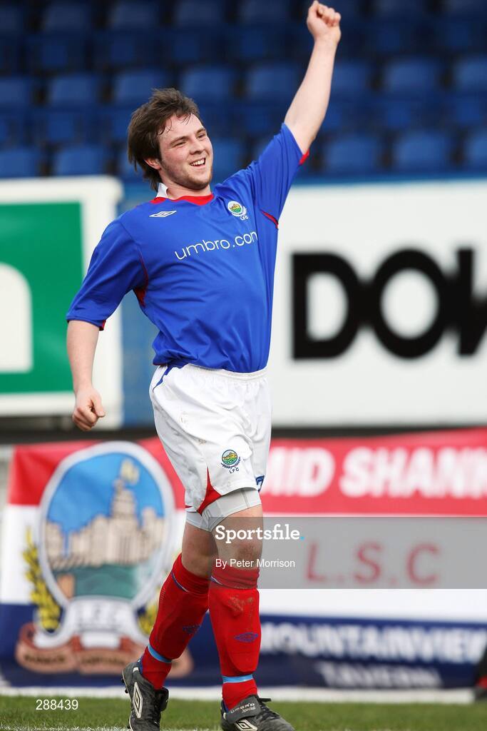 22 March 2008; Linfield's Jamie Mulgrew reacts after scoring a goal. Carnegie Premier League, Linfield v Institute, Windsor Park, Belfast, Co. Antrim. Picture credit; Peter Morrison / SPORTSFILE