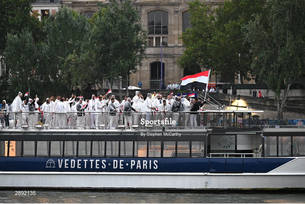 26 July 2024; Team Egypt during the Opening Ceremony of the 2024 Paris Summer Olympic Games on the banks of the river Seine in Paris, France. Photo by Stephen McCarthy/Sportsfile