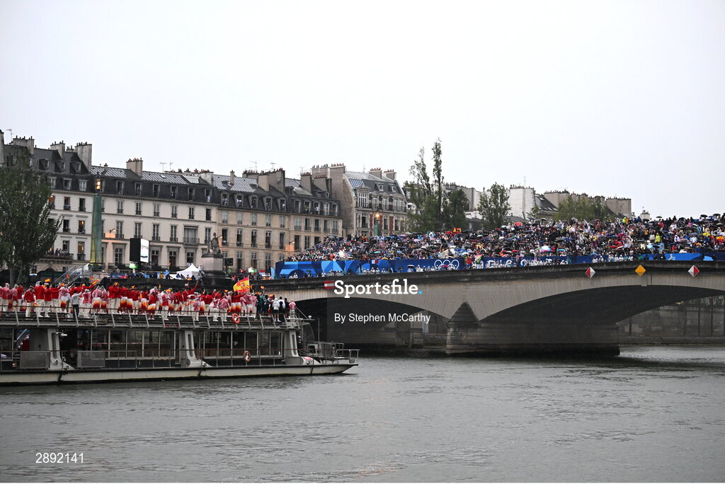 26 July 2024; Team Spain during the Opening Ceremony of the 2024 Paris Summer Olympic Games on the banks of the river Seine in Paris, France. Photo by Stephen McCarthy/Sportsfile