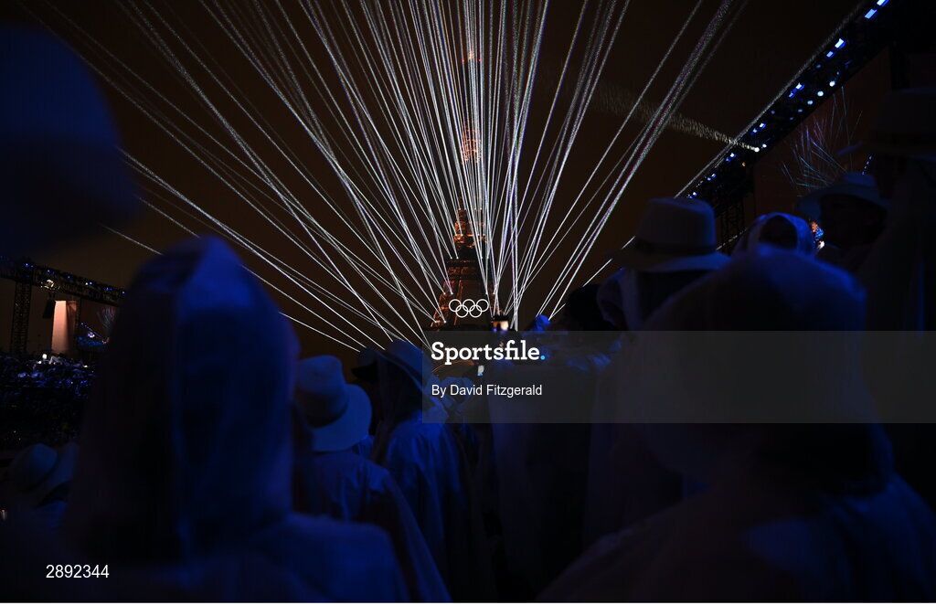 26 July 2024; A general view of the lights display coming from the Eiffel Tower during the Opening Ceremony of the 2024 Paris Summer Olympic Games at the Trocadero in Paris, France. Photo by David Fitzgerald/Sportsfile