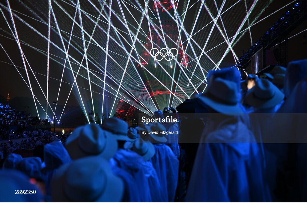 26 July 2024; A general view of the lights display coming from the Eiffel Tower during the Opening Ceremony of the 2024 Paris Summer Olympic Games at the Trocadero in Paris, France. Photo by David Fitzgerald/Sportsfile