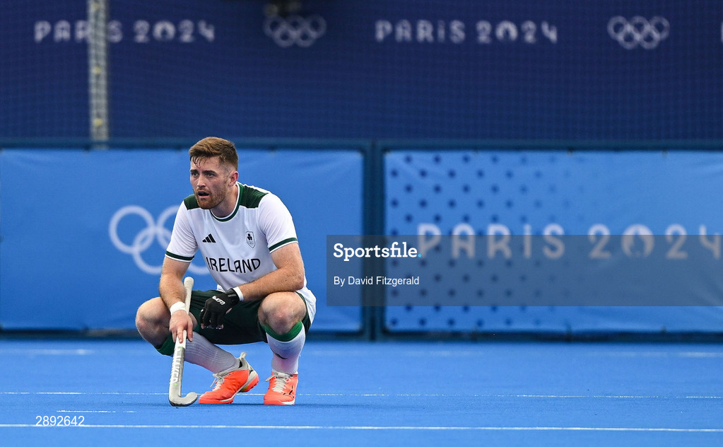 27 July 2024; Shane O'Donoghue of Ireland following his side's defeat in the men's pool B match between Team Ireland and Team Belgium at the Yves-du-Manoir Stadium during the 2024 Paris Summer Olympic Games in Paris, France. Photo by David Fitzgerald/Sportsfile