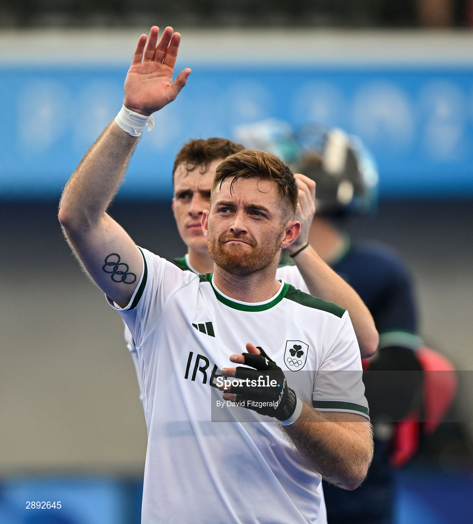 27 July 2024; Shane O'Donoghue of Ireland following his side's defeat in the men's pool B match between Team Ireland and Team Belgium at the Yves-du-Manoir Stadium during the 2024 Paris Summer Olympic Games in Paris, France. Photo by David Fitzgerald/Sportsfile
