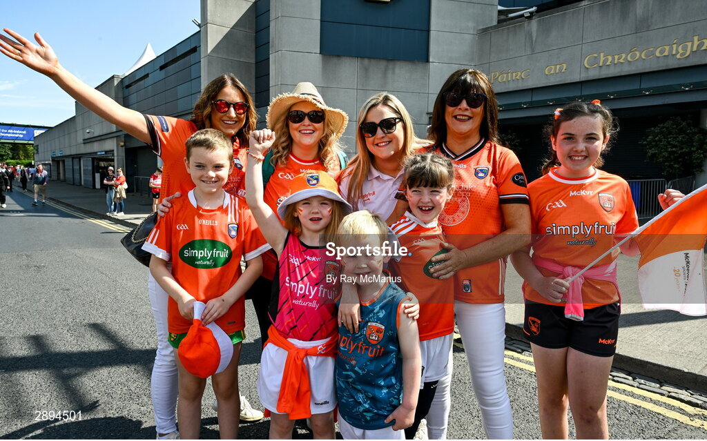 28 July 2024; Armagh supporters make their way to the GAA Football All-Ireland Senior Championship Final match between Armagh and Galway at Croke Park in Dublin. Photo by Ray McManus/Sportsfile