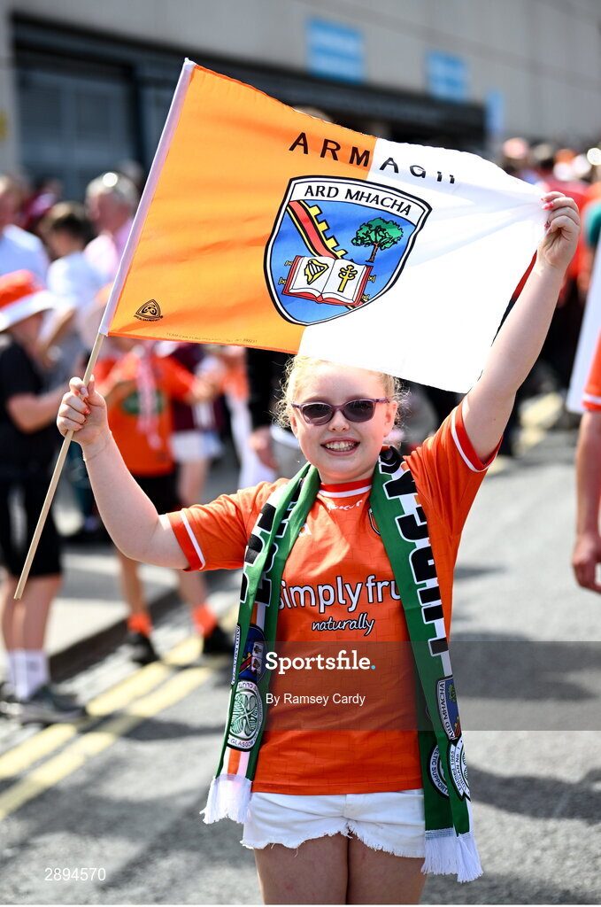 28 July 2024; Armagh supporter Katie Louise McVeigh, who travelled from New York, before the GAA Football All-Ireland Senior Championship Final match between Armagh and Galway at Croke Park in Dublin. Photo by Ramsey Cardy/Sportsfile
