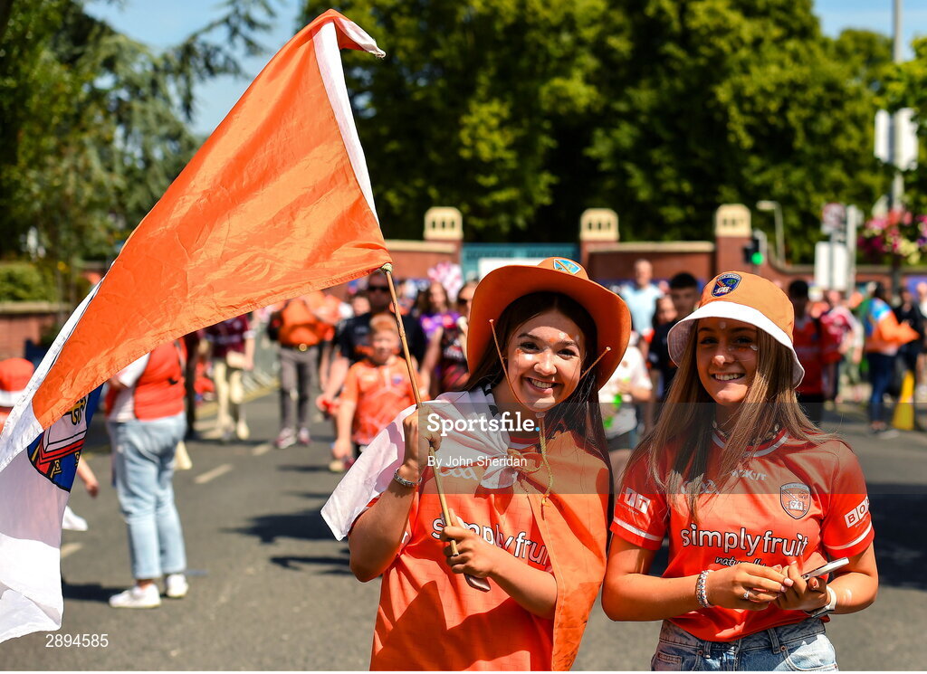 28 July 2024; Armagh supporters make their way down Jone's Road before the GAA Football All-Ireland Senior Championship Final match between Armagh and Galway at Croke Park in Dublin. Photo by John Sheridan/Sportsfile