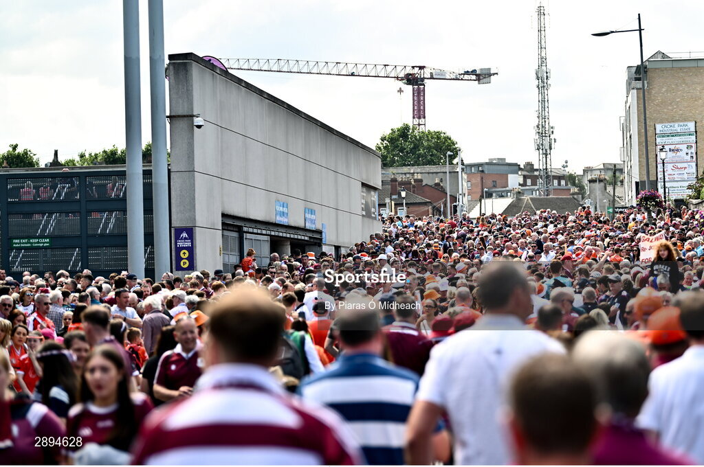 28 July 2024; Supporters outside the ground before the GAA Football All-Ireland Senior Championship Final match between Armagh and Galway at Croke Park in Dublin. Photo by Piaras Ó Mídheach/Sportsfile