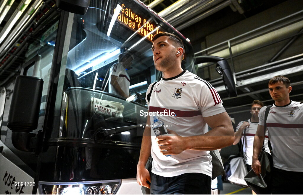 28 July 2024; Damien Comer of Galway arrives before the GAA Football All-Ireland Senior Championship Final match between Armagh and Galway at Croke Park in Dublin. Photo by Ben McShane/Sportsfile
